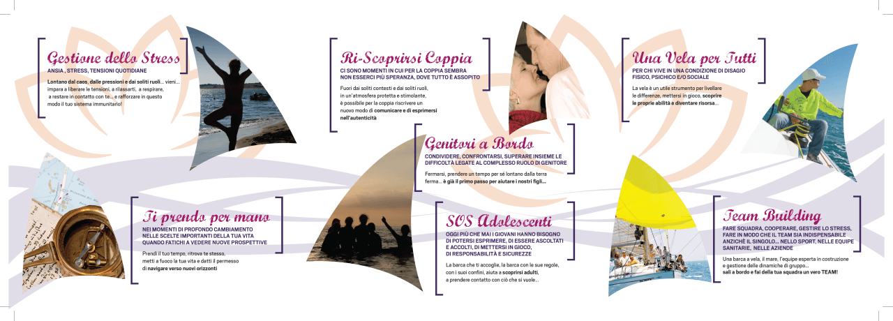 Sono previsti anche percorsi mirati alla serenità di coppia: la vela, il mare, quel senso di avventura, permettono di uscire dalla routine scoprendosi reciprocamente diversi.